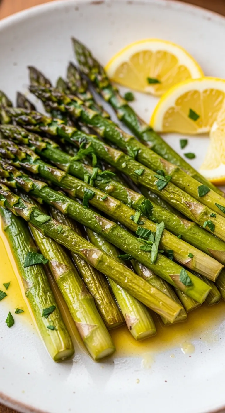 Roast asparagus and finish with melted butter and fresh lemon juice.