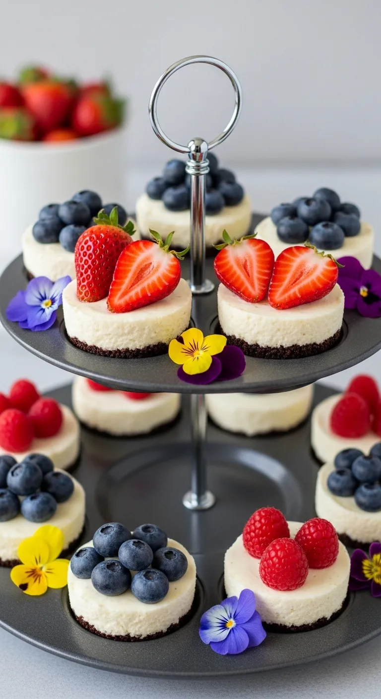 Party tip: Set up a topping bar with berries, sauces, and sprinkles so guests customize their own. Twelve mini cheesecakes cost about $2 each—perfect for showers and parties.