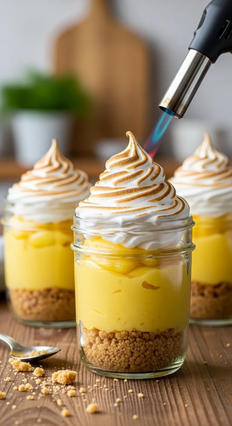 Torch tip: A kitchen torch costs about $15 and makes desserts look professional. Six jars cost about $2.50 each. Assemble meringue-topped jars just before serving for best texture.