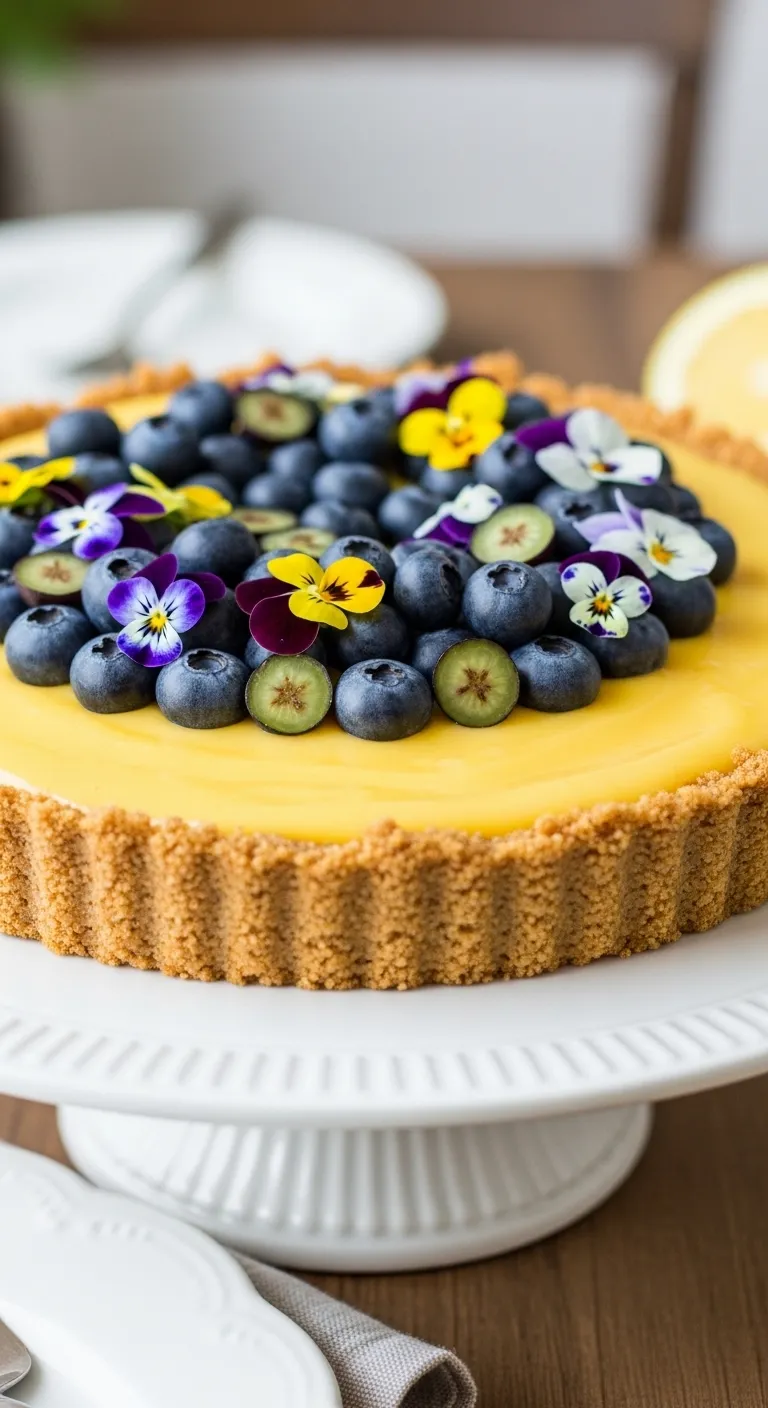 Spread the filling into the crust and smooth the top. Arrange fresh blueberries in concentric circles on top—this takes five minutes but looks incredibly impressive. Refrigerate for at least four hours until firm.