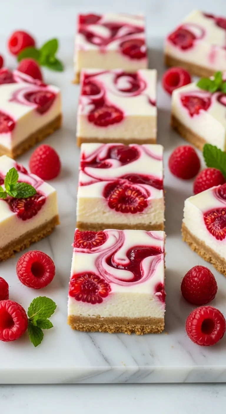 Pour half the filling over the crust. Drop spoonfuls of raspberry jam over the filling—about half cup total. Top with remaining filling, then drop more jam on top. Use a knife to swirl gently, creating a marbled effect.