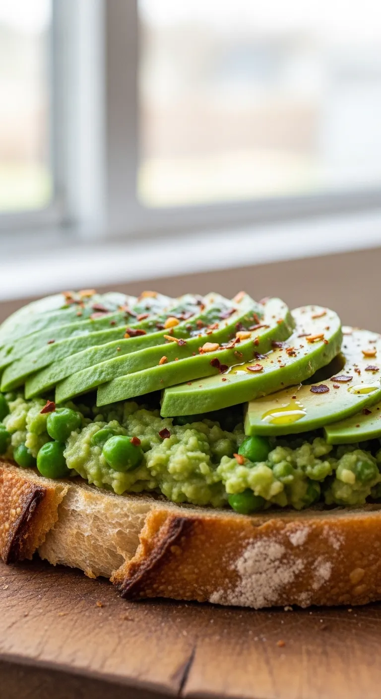 Mash peas with avocado and spread on toast for a vibrant snack.