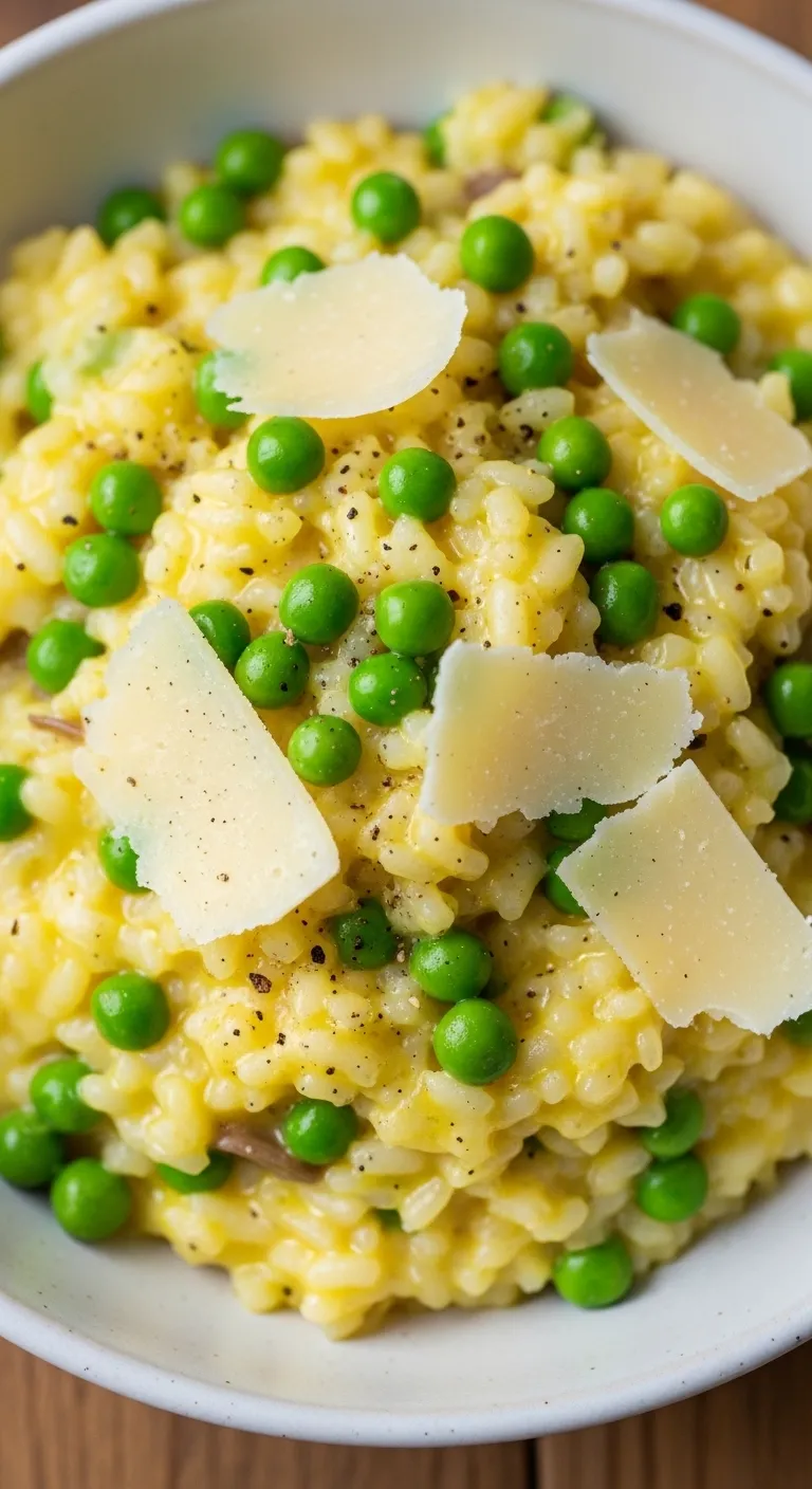 Fold peas into risotto near the end of cooking so they stay vibrant and tender.
