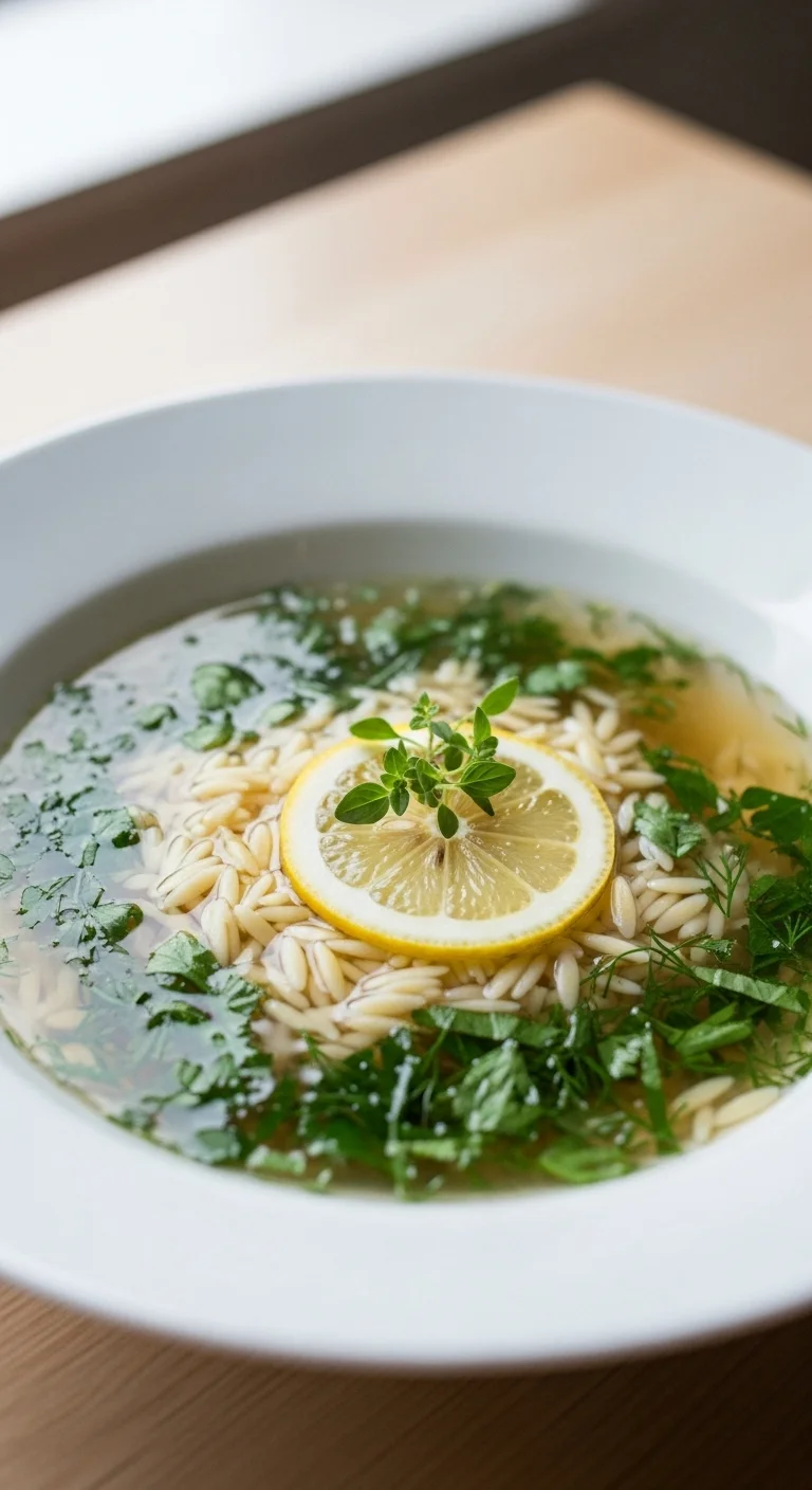Orzo gives this soup body while staying light. Add lemon juice and herbs at the end. Works well with chicken or on its own.