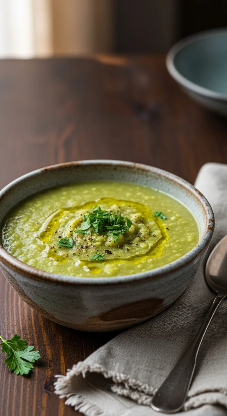 Leeks cook down softly and pair well with potatoes. Use broth and a small splash of cream or milk. Blend until smooth. This soup feels calm and filling without being dense.