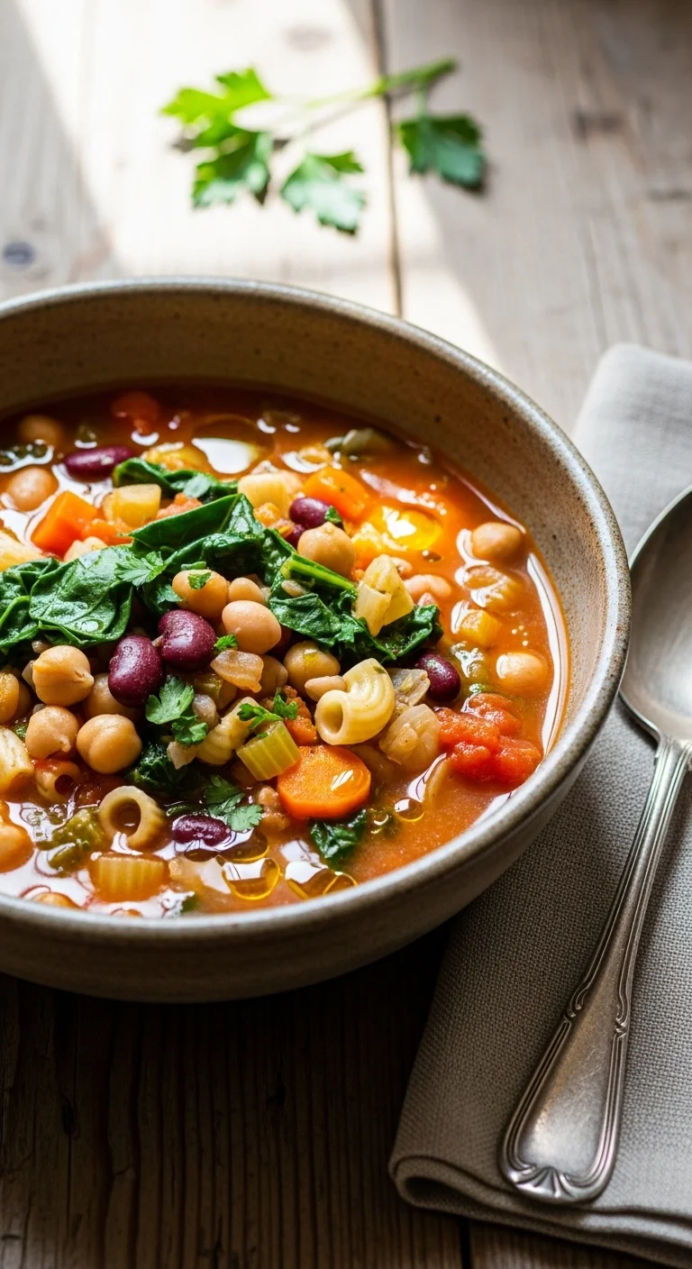 Lighter vegetables like zucchini, carrots, and spinach keep this soup gentle. Beans add body without heaviness. Simmer until tender and finish with olive oil. It works well for batch cooking.