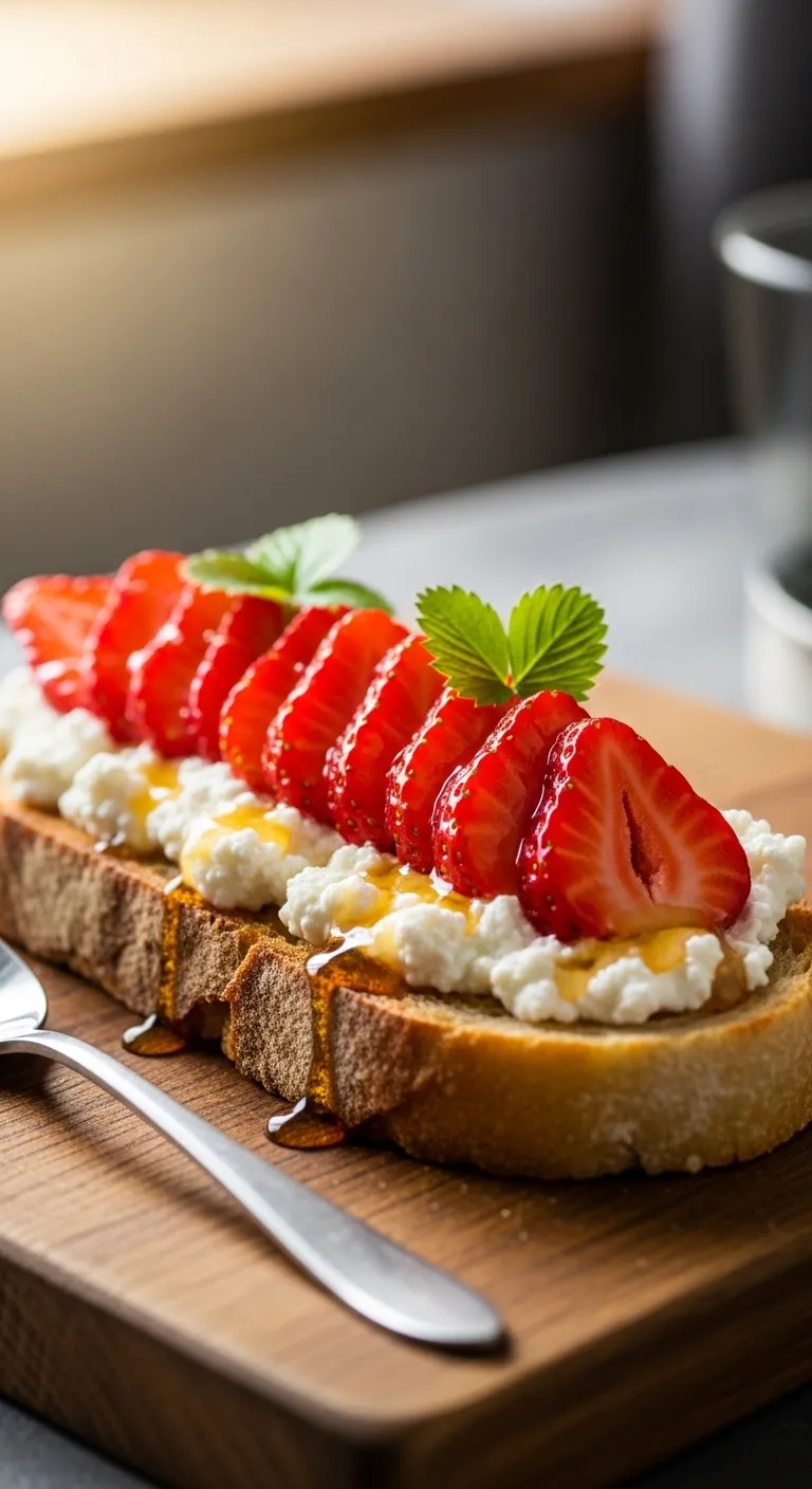 Creamy ricotta paired with fresh strawberries for breakfast or snack.