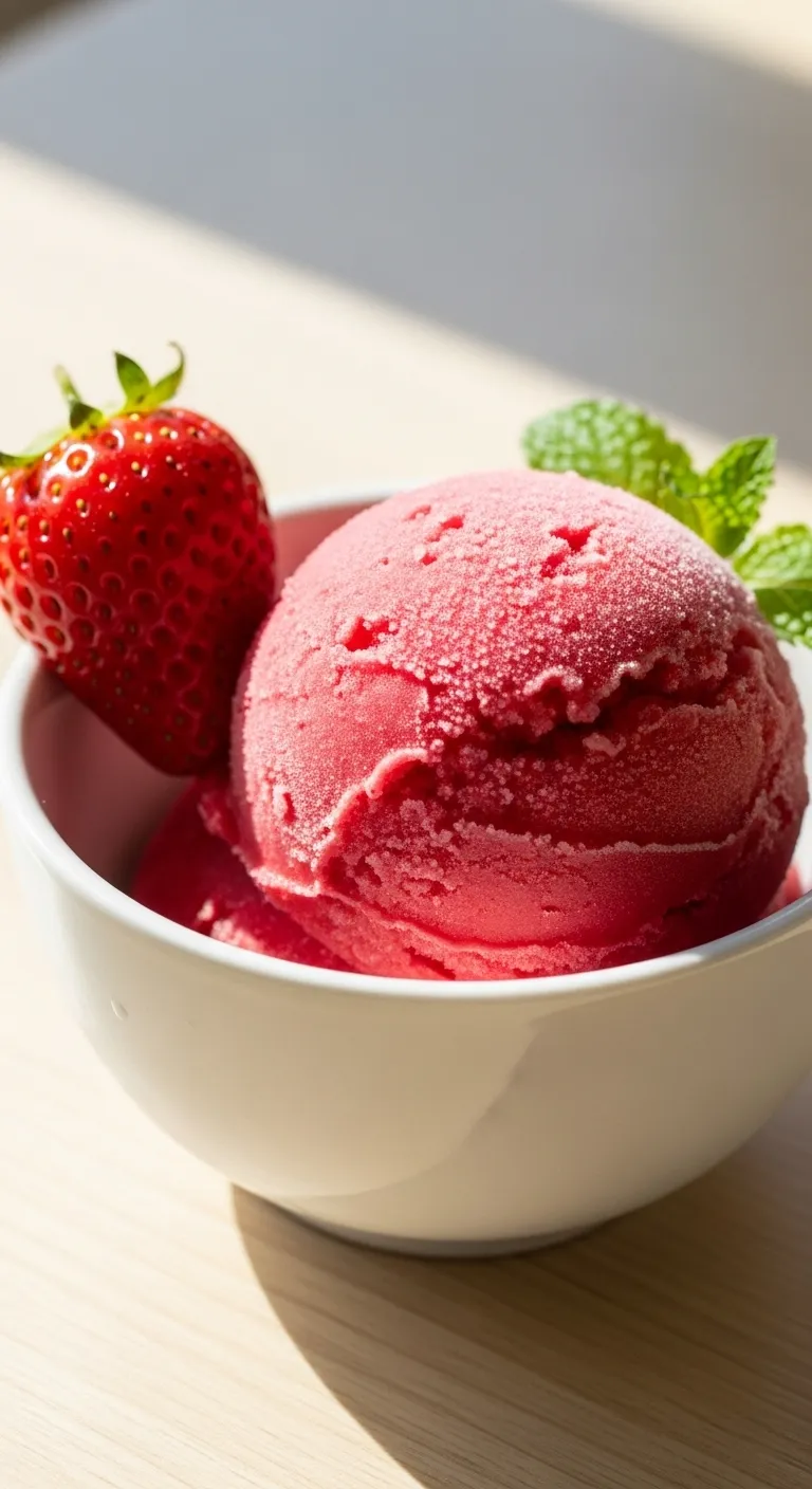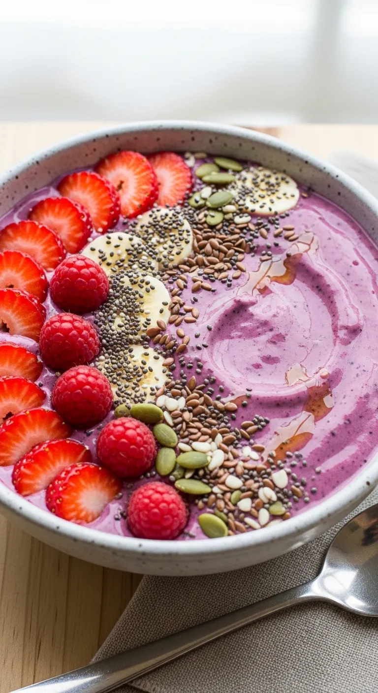 Blend frozen strawberries with yogurt for a thick, refreshing breakfast bowl.