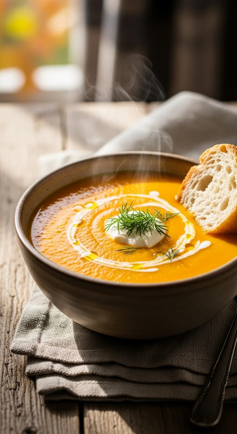 Blend roasted carrots with broth and fresh ginger for warmth.