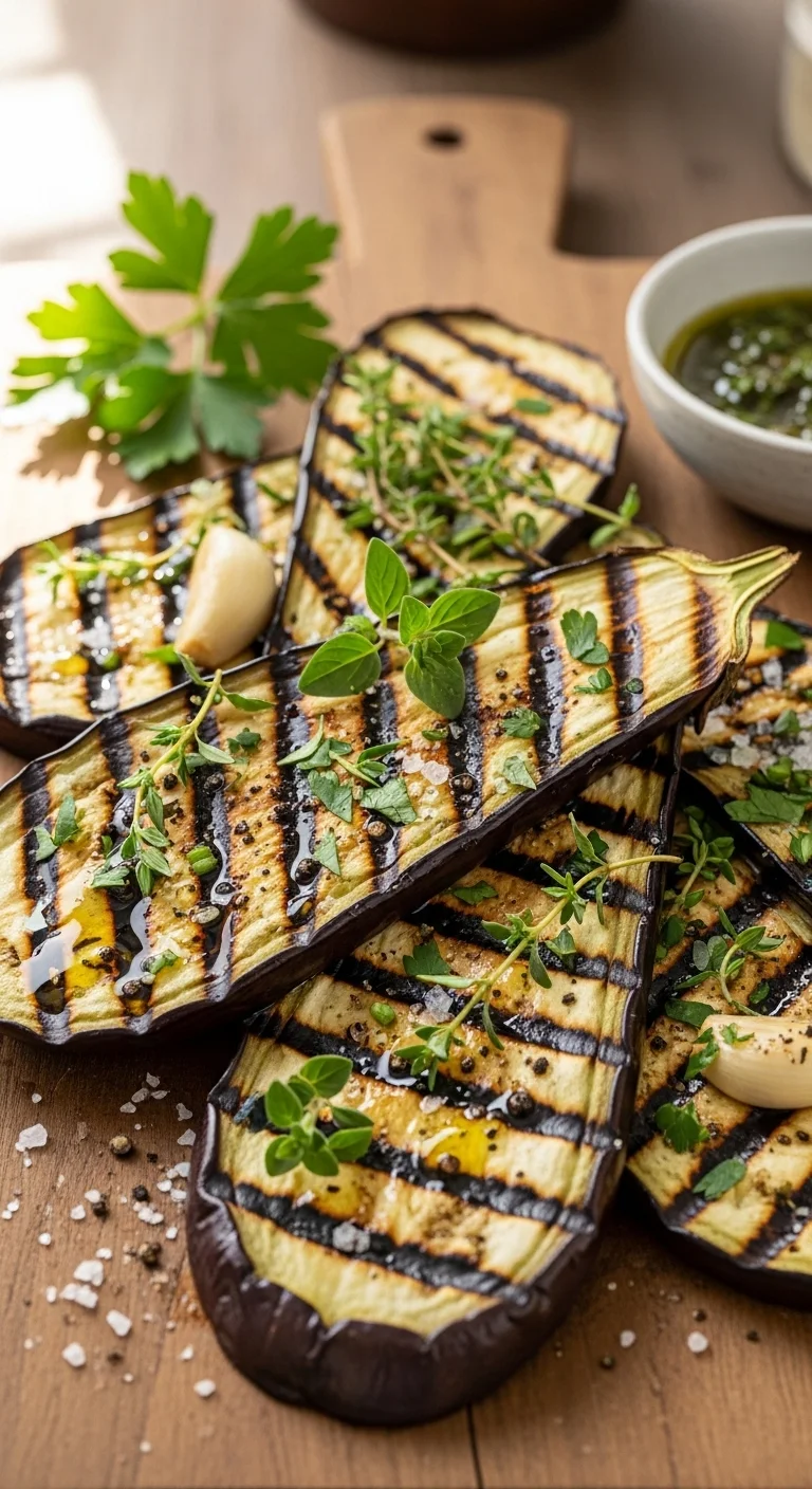 Lightly brush vegetables with oil and grill until tender. Finish with herbs.