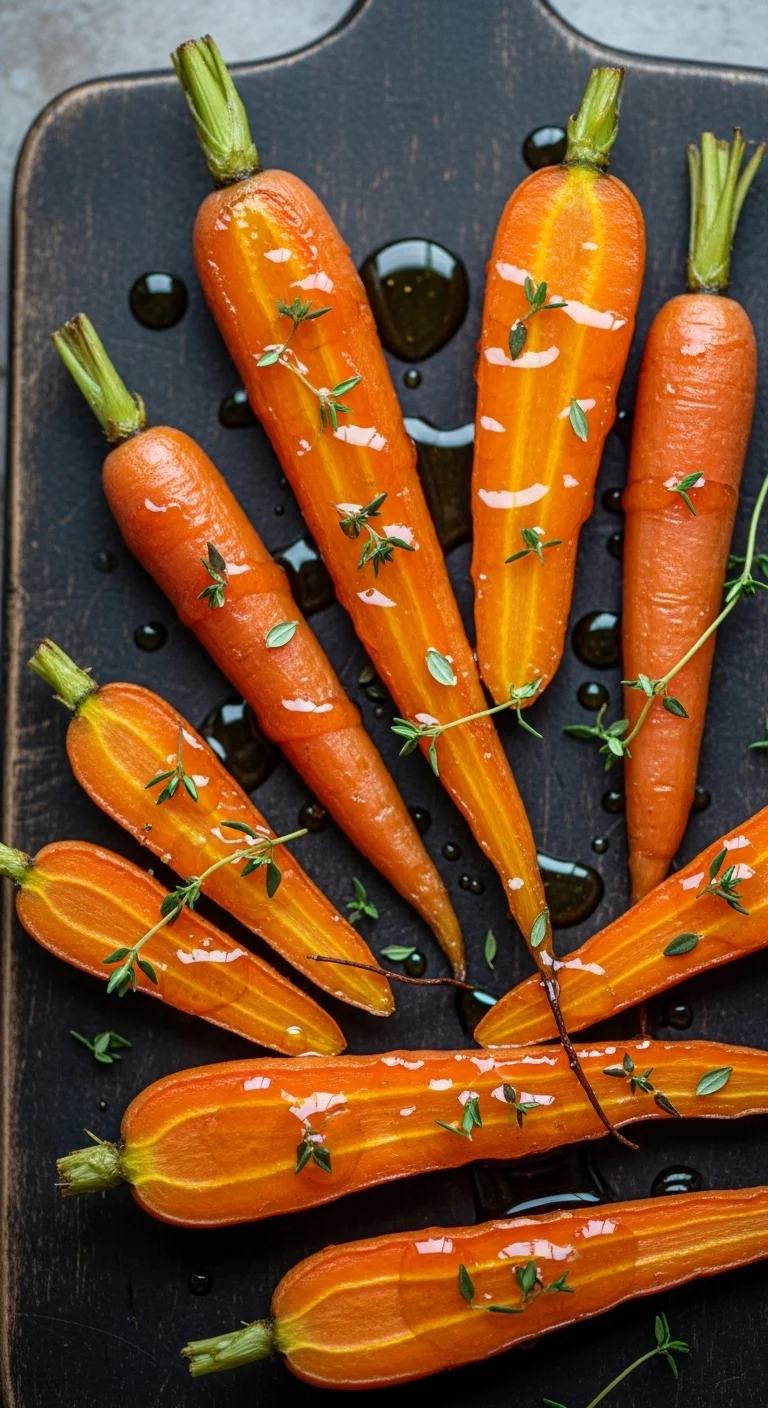 Roast carrots until tender, then drizzle lightly with honey and sprinkle fresh thyme. This brings out their natural sweetness without overpowering.