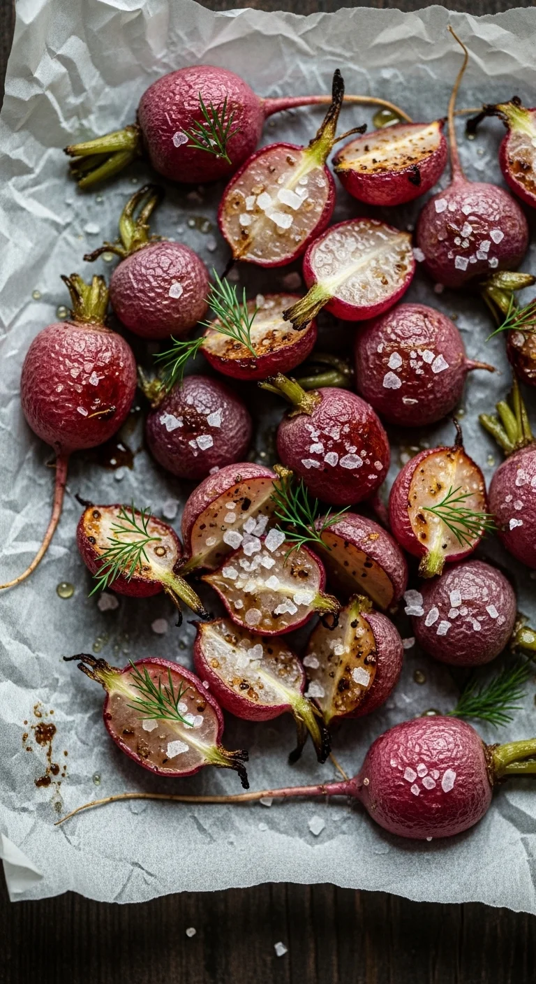 Roasting mellows the peppery bite of radishes. Toss with olive oil and roast until tender. Finish with sea salt.