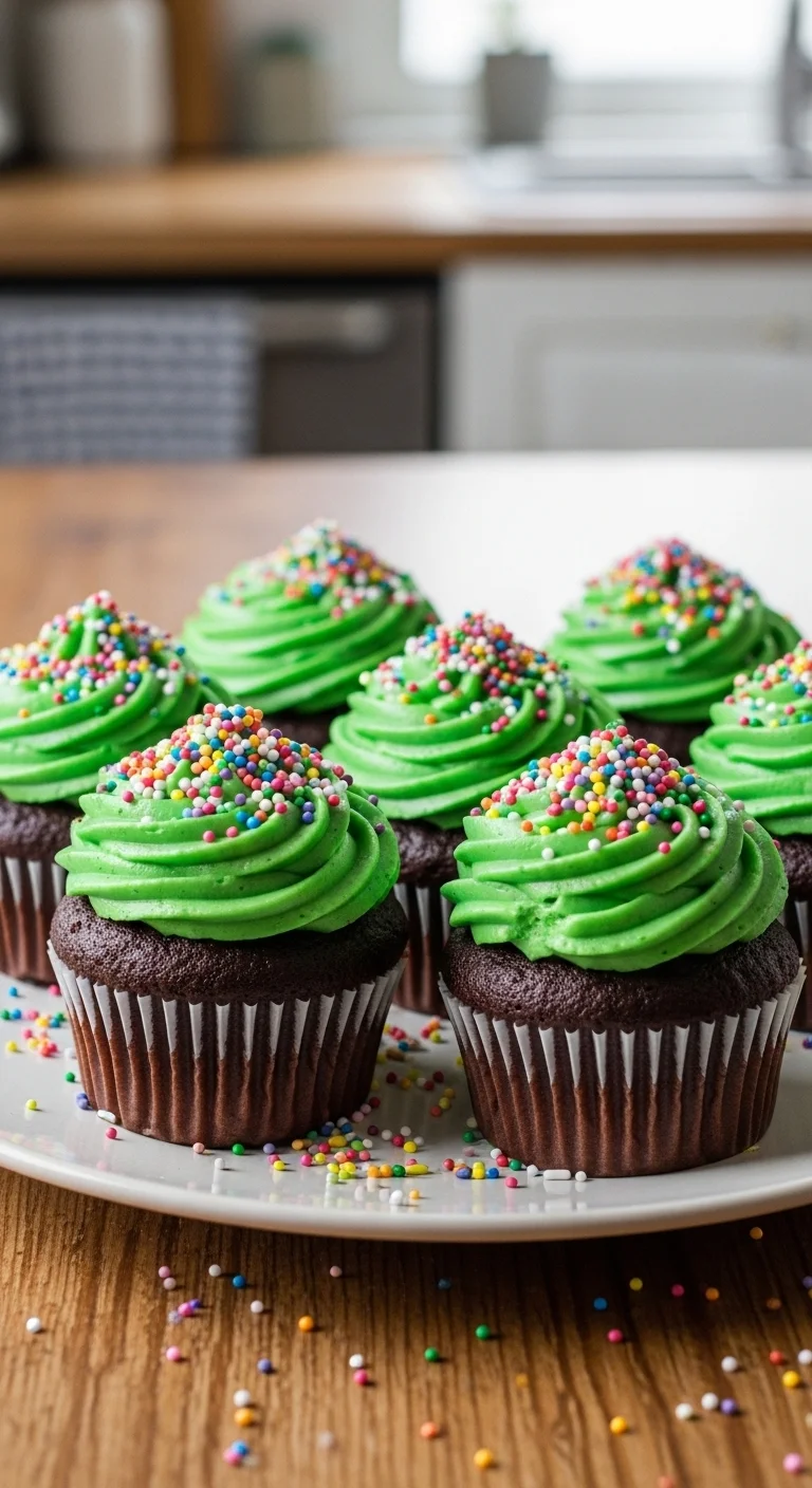 Green Sprinkle Chocolate Cupcakes