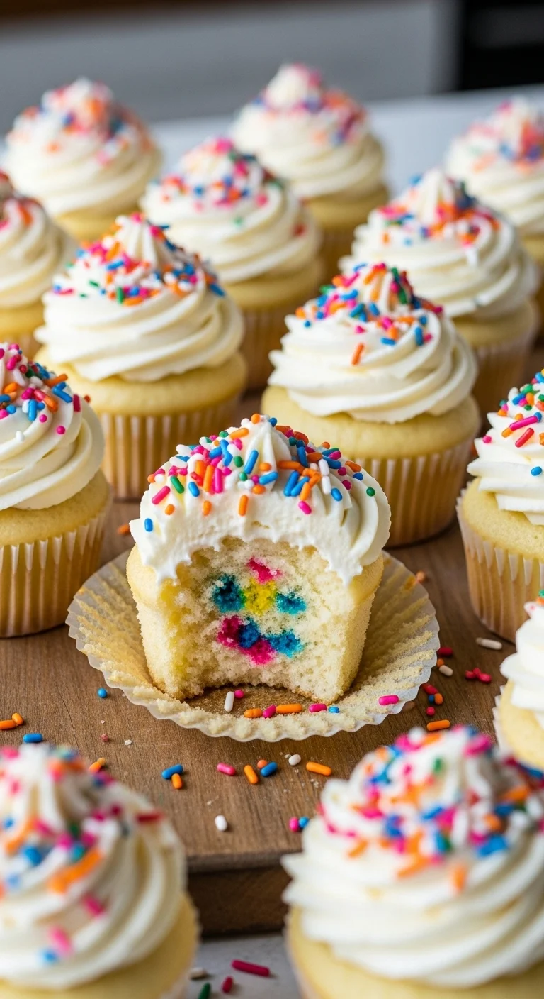 Rainbow Sprinkle Confetti Cupcakes