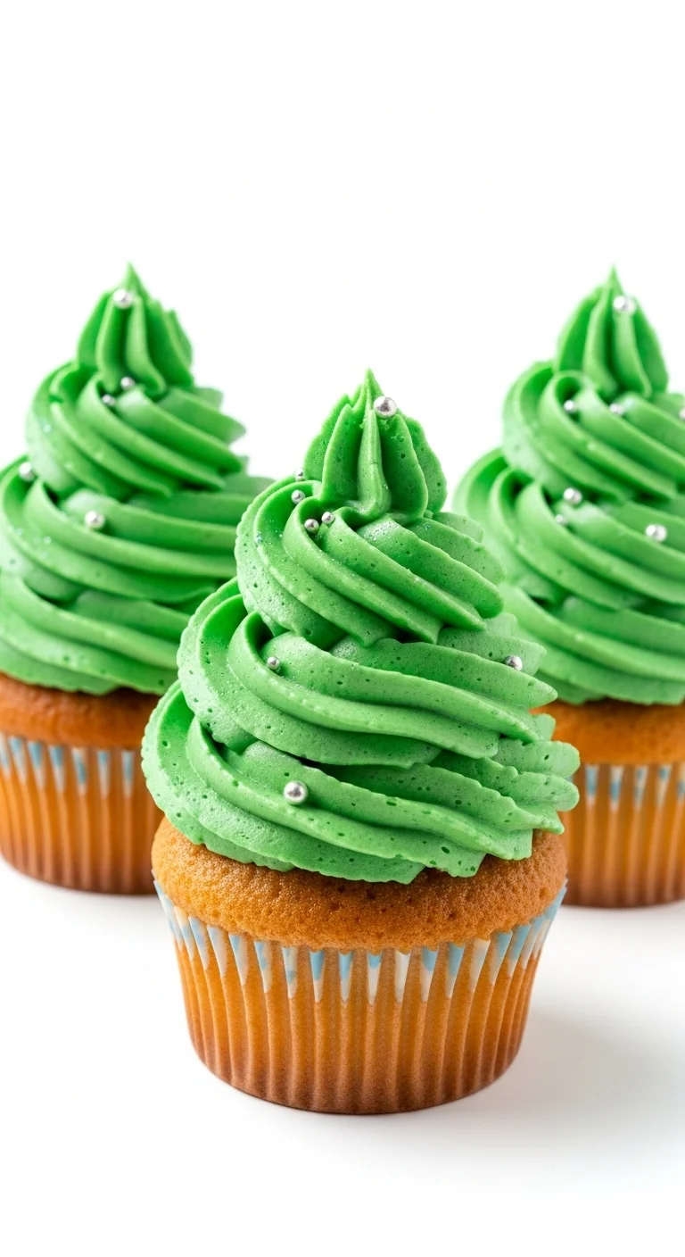 These cupcakes start with a basic vanilla batter. Boxed or homemade both work. Tint the frosting light green for a soft look or darker if you want bold color. A single piping tip creates a neat swirl without practice.