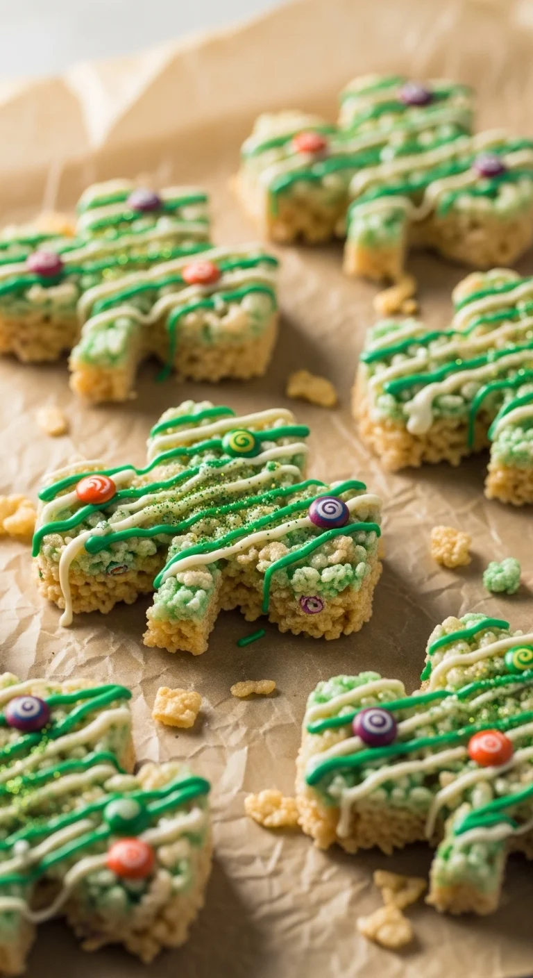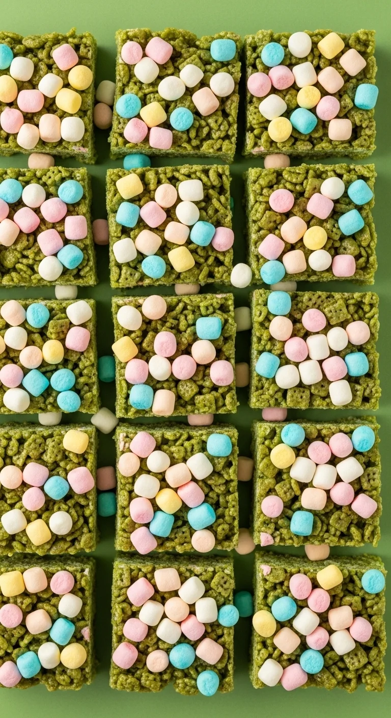 Classic cereal treats get a festive upgrade with marshmallow cereal on top. Tint the mixture lightly green or leave it plain. Press cereal pieces on while warm so they stick. Kids can help shape and decorate. These treats are budget-friendly and quick to make.