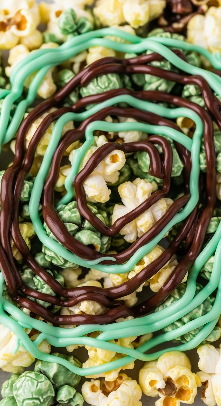 Popcorn drizzled with mint chocolate sets quickly and serves well in bowls or bags.