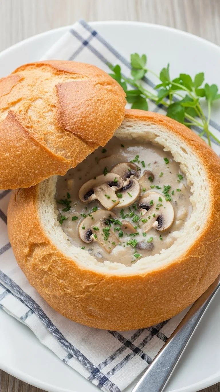 13. Creamy Mushroom Bread Bowl