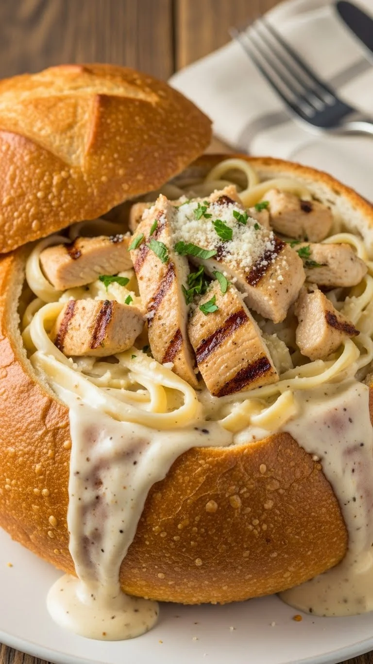 14. Chicken Alfredo Bread Bowl